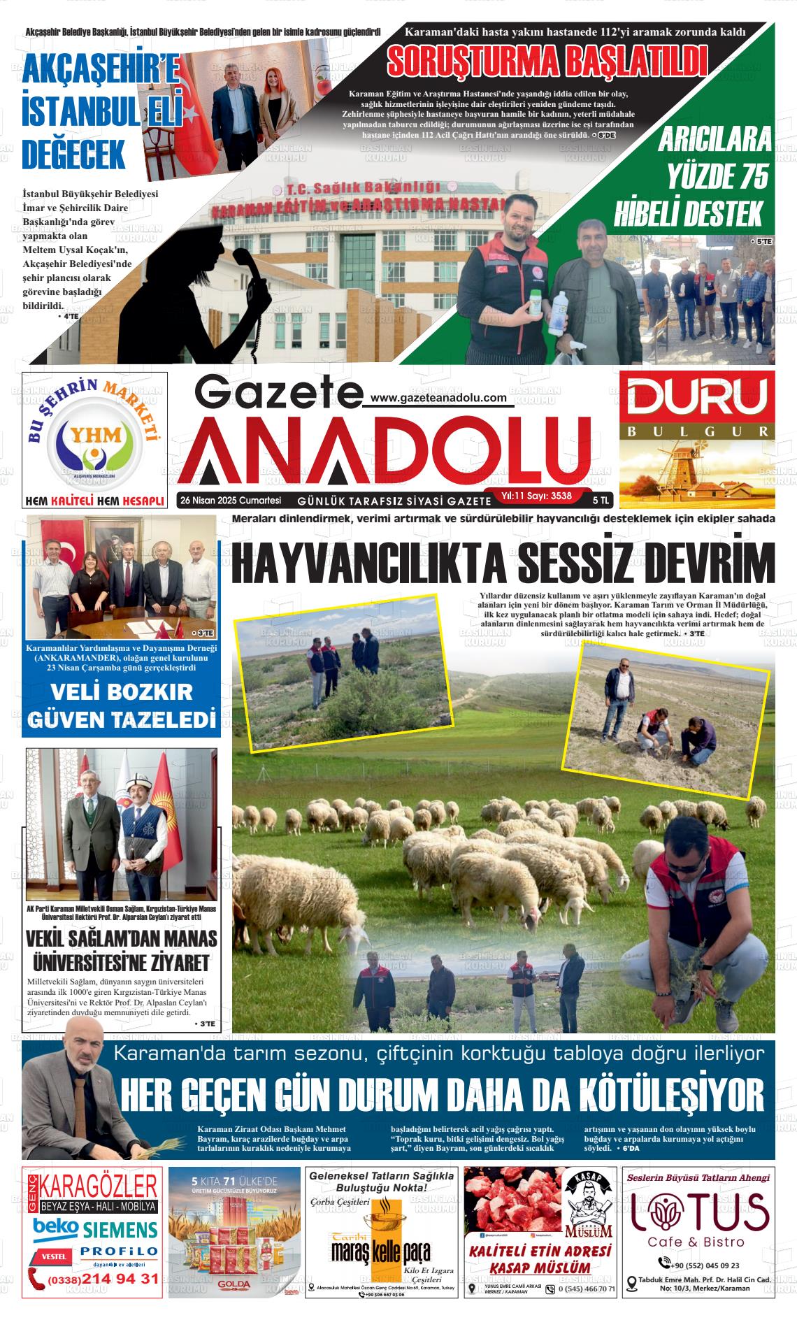 09 Aralık 2025, Salı Günü Manşeti